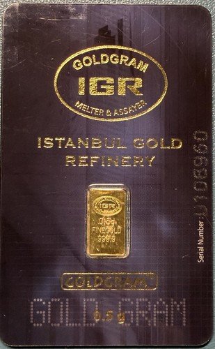 0.5g .9999 Gold Bar IGR Istanbul Turkey in Assay Card Gold Gram Sealed Bullion