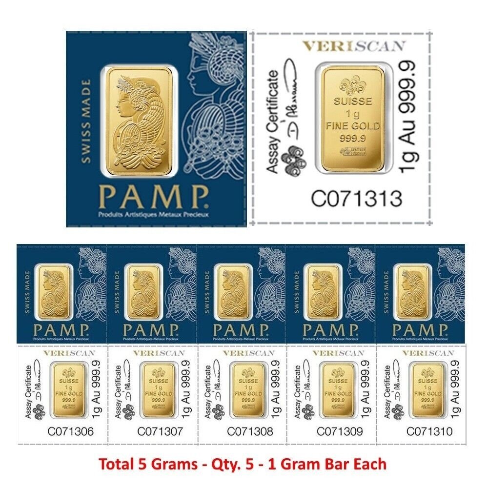 Lot of 5 – 1 Gram Gold Bar Divisible PAMP Suisse MULTIGRAM .9999 Fine Gold Bar