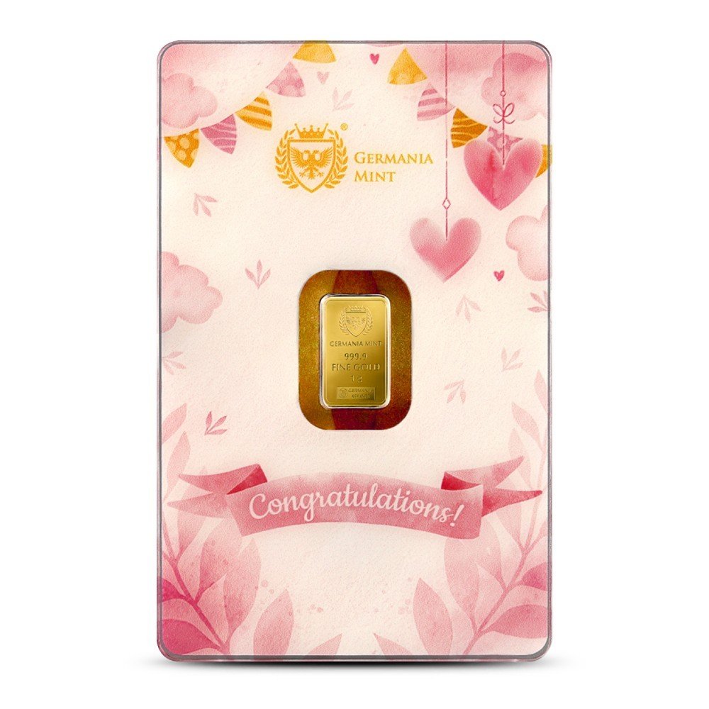 1 Gram Germania Mint Newborn Girl Gold Bar (New w/ Assay)