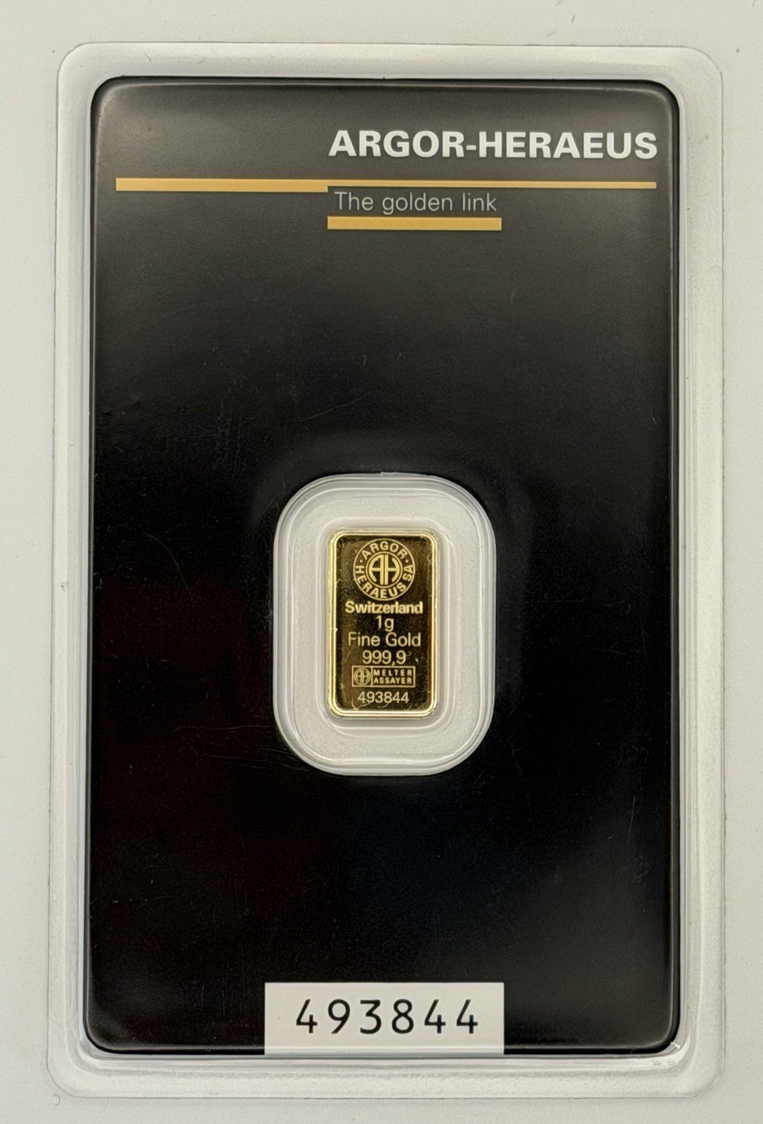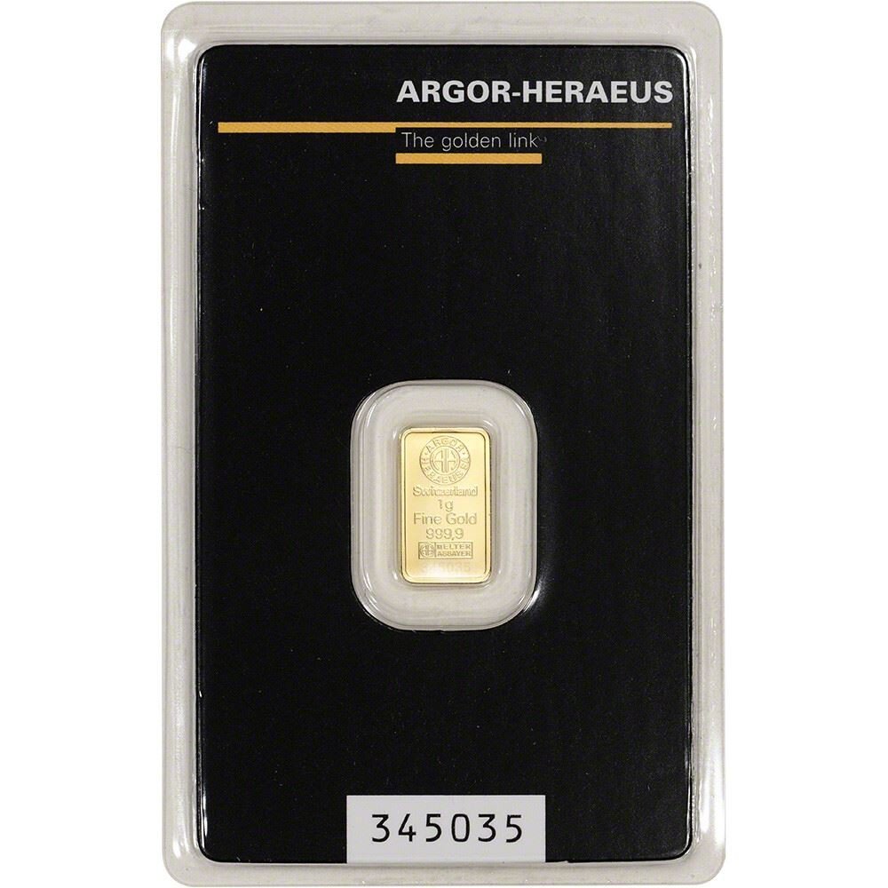 1 gram Gold Bar – Argor Heraeus – 999.9 Fine in Assay