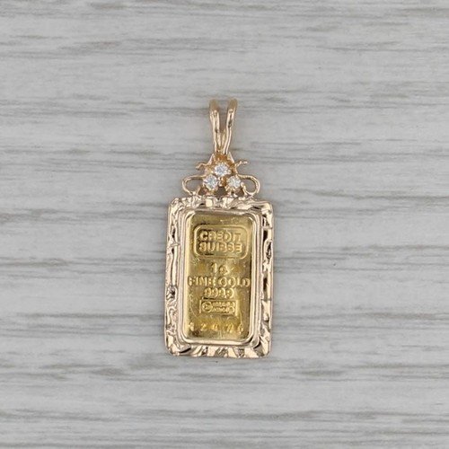 Credit Suisse 1 Gram Fine Gold 999.9 Bar Pendant Charm 14k Frame