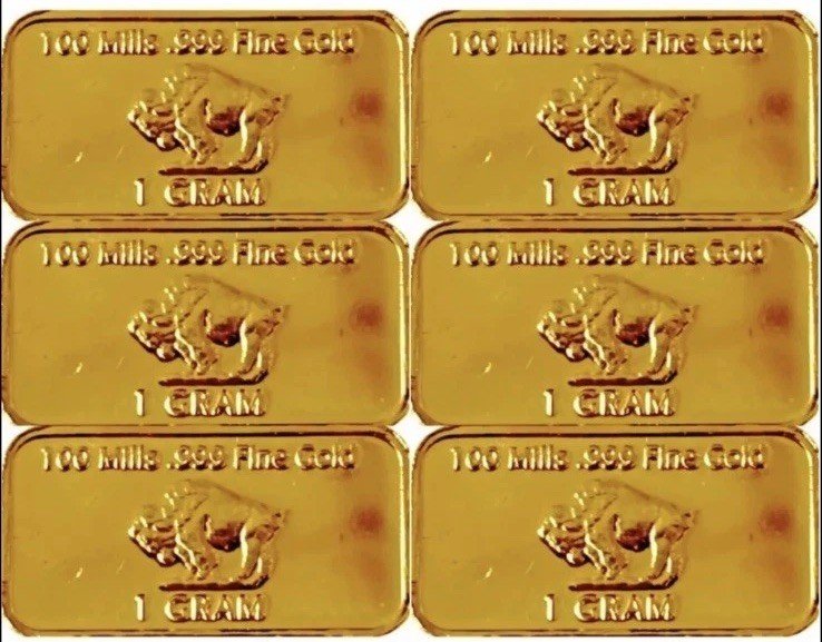 (6) 1 Gram – Gold Buffalo Bullion Bar .999 Fine 24k GOLD BARS